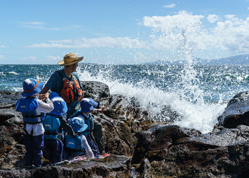 川遊びやカヌー、スキー、富士お中道ハイクなど、非日常の自然体験は子どもの心を揺さぶります。園生活とは大きく異なる環境に緊張感を抱き、子どもたちの集中力と好奇心が高まります。普段できない遊びを通して感覚が敏感になり、危険を理解して挑戦した後は大きな達成感に包まれ、それぞれの自信になっていきます。