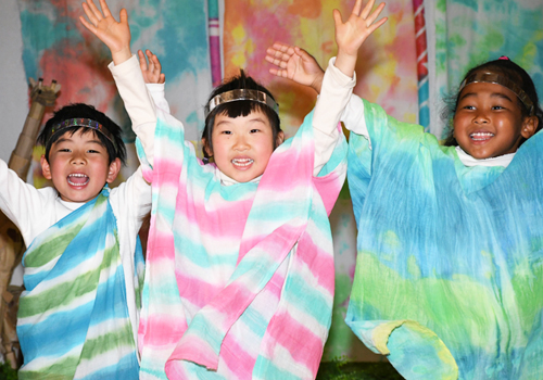 色々な体験を通して子どもたちは多くの発見をしていきます。その発見の瞬間の感動や驚き、その後に得た知識は誰かに伝えて共有したくなるのが子どもの自然な心理です。それを造形的、身体的、音楽的、言語的などそれぞれの形で表現します。子どもの発想を大切に、個々の思いが表れる発表の場にしていきます。